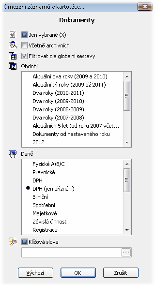 Databáze/Dokumenty Nový Ctrl+N Tuto funkci lze také vyvolat stiskem klávesy ENTER nebo poklepáním myši v okně databáze. Musí být však aktivní panel poplatníků. (Tedy stisknout ENTER nebo poklepat myší musíme na řádku poplatníka). Funkce otevře dialogové okno Nový formulář s nabídkou dostupných šablon. Dokument, který takto vznikne, bude mít naplněno maximální množství údajů převzatých z databáze poplatníků a z údajů o uživateli programu. Chování funkce vyvolané z nabídky nebo klávesovou zkratkou Ctrl+N není ovlivněno polohou kurzoru v okně databáze, tedy ať jste v okně dokumentů nebo poplatníků, CTRL+N nebo Soubor/Nový vždy vyvolá nabídku nových dokumentů. Otevřít Ctrl+O Otevře v novém okně již existující přiznání. Přiznání můžete otevřít rovněž klepnutím na tlačítko Otevřít na Standardním panelu nástrojů nebo pomocí klávesové zkratky Ctrl+O. Výběr přiznání, které má být otevřeno, se provádí standardně jako v jiných aplikacích systému Windows v dialogovém okně Otevřít soubor. Vyberte nebo zadejte název přiznání, které chcete otevřít. Pole ”Název souboru” v dialogu standardně obsahuje seznam souborů s příponou PDW, což je standardní přípona, která se používá pro soubory obsahující uložené formuláře programu TaxEdit - Přiznání k dani pro Windows. Pokud je vyžádaný dokument již v programu otevřen, zobrazí se výzva ”Soubor XXX je již otevřen. Otevřít znovu?”. Pokud na tuto otázku odpovíte kladně, bude kopie souboru otevřena v novém okně. Budou tedy najednou v různých oknech zobrazeny neidentické kopie téhož dokumentu. Při záporné odpovědi bude okno s již otevřeným dokumentem nastaveno jako aktivní a bude zobrazeno. Volba Otevřít se chová poněkud odlišně, je‑li aktivní Okno databáze. Potom totiž záleží na poloze kurzoru v databázovém okně. Pokud je kurzor v horní části okna - tedy na seznamu daňových subjektů, chová se funkce otevřít tak jak bylo popsáno výše. Pokud je kurzor v dolní části okna - tedy v seznamu dokumentů, je přímo otevřen dokument pod kurzorem. Z databáze je možné otevřít i více dokumentů najednou, pokud je zapnuta volba Povolit vícenásobný výběr... v Nástroje/Možnosti databáze. CC