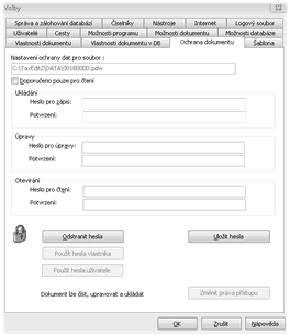 Jazyková mutace Vzhled programu Možnosti dokumentu... Sada voleb, jejichž hodnota řídí chování aplikace v různých situacích. Nastavení se aktivují zatržením políčka v příslušném řádku.